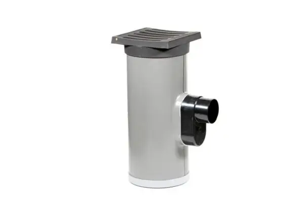 Complete straatkolkset bestaande uit een PVC onderbak en een gietijzeren rooster. De onderbak heeft een diameter van 315 mm en is voorzien van één spieaansluiting met een stankslot.
