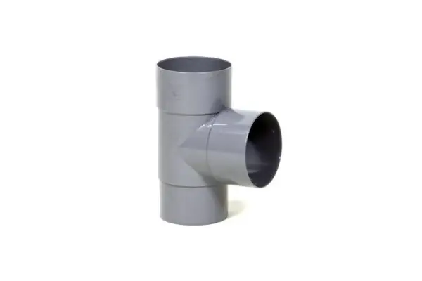 Met dit PVC T-stuk van 87 graden kunt u op een hemelwater afvoerbuis van 70 mm eenvoudig een rechte afsplitsing naar PVC 70 mm maken. Het T-stuk is aan 1 doorgaande zijde en de afsplitsing voorzien van een lijmmof. De andere doorgaande zijde is voorzien van een spie. De spie past in een ander PVC hulpstuk van 70 mm met een lijmmof. Het T-stuk 87 graden is voorzien van een KOMO keur.